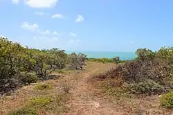 Albany Island is off the north-eastern coast in the Cape York Peninsula about 20 km (12 mi) East of Bamaga, and 6 km (3.7 mi) southeast of the tip of Cape York. It is separated from the peninsula by the Albany Passage (10°44′21″S 142°36′00″E / 10.7392°S 142.6000°E).[2][3][4]