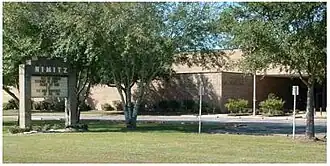 On May 4, 1935, voters in Common School District 29 approved creation of the Aldine Independent School District (AISD) by a 128 to 28 margin.[18] With the S.M.N. Marrs School filled to capacity, AISD voters approved 57-14 a $25,000 bond for construction of a new 10-classroom junior/senior high school building on September 7, 1935.[19] This new building opened in 1936 next door to the Marrs School on Aldine-Westfield Road.[20] It too was named S.M.N. Marrs. AISD acquired part of Common School District 26, also known as the White Oak District, in 1937.[21] This added portions of Acres Homes to AISD. Included was the White Oak School, which became the district's school for black students. In the spring of 1948, AISD opened another high school located immediately to the north of S.M.N. Marrs High.[22] This school was named Aldine High School, after the nearby community. The former Marrs High School was turned into a junior high school.
