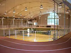 43°42′10″N 72°17′04″W / 43.70278°N 72.28444°W Dartmouth College's Alumni Gymnasium, located in Hanover, New Hampshire, in the United States, is the center of Dartmouth College's athletic life and hosts venues for many of Dartmouth's 34 varsity sports. After its completion in 1910, it was considered to be one of the most complete athletic facilities in the Eastern United States. The gymnasium contains two swimming pools, intramural basketball courts, championship basketball courts, two weight rooms, squash courts, 1/13 of a mile jogging track, two saunas, fencing lanes, and a rowing tank for crew training.