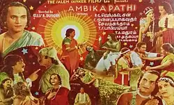 Ambikapathy (also spelled as Ambikapathi) is a 1937 Indian Tamil musical period film directed by American film director Ellis R. Dungan.[2][3][4][5] It starred M. K. Thyagaraja Bhagavathar, M. R. Santhanalakshmi, Serugulathur Sama, T. S. Balaiya, N. S. Krishnan, T. A. Madhuram and P. G. Venkatesan. Ambikapathy is regarded as one of the greatest hits of pre-independence Tamil cinema. Ambikapathy, along with Chintamani were the greatest hits of 1937[2][6] and made critics regard Bhagavathar as the "first superstar of Tamil cinema".[4][7][8] This was the first Tamil film to name a music director in its credits.[9]