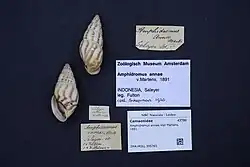 | Shell of Amphidromus annae (specimen at Naturalis Biodiversity Center) | |
