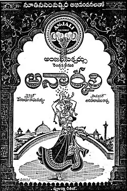 Anarkali (transl. Pomegranate blossom) is a 1955 Indian Telugu-language historical romance film, written and directed by Vedantam Raghavayya. The film stars Akkineni Nageswara Rao and Anjali Devi. It is based on the legend of the romance between Mughal prince Salim (later known as Jahangir) and the eponymous court dancer.