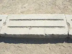 A section of the stone starting line at Olympia, which has a groove for each foot