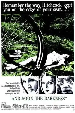 And Soon the Darkness is a 1970 British thriller film directed by Robert Fuest and starring Pamela Franklin, Michele Dotrice and Sandor Elès.[1] The plot follows two British nurses on a cycling holiday in rural France; during their trip, one of them vanishes, and the other struggles to search for her in a rural community.
