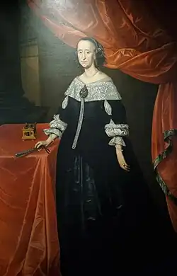 She was married according to the Roman Catholic rite into the Styrian noble family of Eggenberg on 23 October 1639 in Regensburg[1] to Prince Johann Anton I von Eggenberg, Duke of Krumau, who subsequently received the opportunity to acquire the shire of Gorizia and Gradisca along the Adriatic coast two years later from his boyhood friend, Emperor Ferdinand III. The marriage ceremony had been negotiated by Christian Wilhelm von Brandenburg and prince Johann Anton I thereby secured for himself Brandenburg's support for his claim to a seat in the Imperial Diet.[2] She demonstrated a strong character and conviction by holding on firmly to her family's Protestant faith[3] in spite of her marriage to the son of Hans Ulrich von Eggenberg, chief minister of Emperor Ferdinand II, who had prosecuted the Counter-Reformation in the Habsburg hereditary lands as well as the Thirty Years' War.