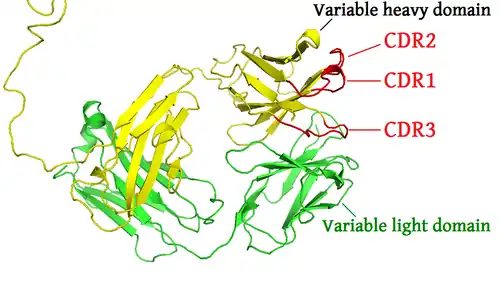 - ^ Li T, Pantazes RJ, Maranas CD (2014). "OptMAVEn--a new framework for the de novo design of antibody variable region models targeting specific antigen epitopes". PLOS ONE. 9 (8): e105954. Bibcode:2014PLoSO...9j5954L. doi:10.1371/journal.pone.0105954. PMC 4143332. PMID 25153121.