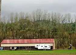 The airstrip was constructed in 1994 by Rod Anders, known as "Ramblin' Rod" to Portland TV viewers, for his private airplane alongside his log cabin home.[1] In 2004, Mike and Jennie Applebee purchased the property and airstrip from the estate of Anders.[2] In 2005, the owner announced plans to convert the airstrip into a commercial operation and include services such as flight training.[3] Owner Jim Applebee was issued citations by the county in June 2005 for operations at the airport.[3] Neighbors formed a group to oppose the conversion and hired an attorney.[2] The application failed as incomplete and the citations were dismissed by the court.[4]