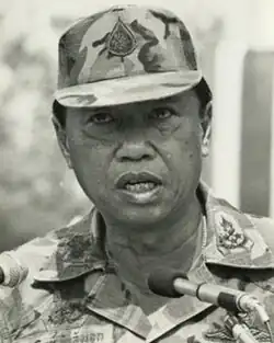 General Arthit's subsequent rapid rise to the post of Commander-in-Chief of the Royal Thai Army in October 1982 was unprecedented.[1] Also serving as the Supreme Commander starting September 1983, General Arthit at times challenged the propriety of key government policies. In November 1984, for example, he made a televised condemnation of the government's currency devaluation policy. Also in 1984, apparently with General Arthit's blessing, some active-duty and retired army officers pressed for constitutional amendments aimed at enhancing their political influence. A showdown between Arthit's camp and Prem's ruling coalition was narrowly averted when General Arthit urged the officers to abandon the amendments.