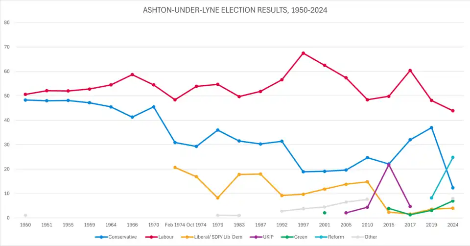 - ^ "Election for the constituency of Ashton-under-Lyne on 4 July 2024". UK Parliament, Election Results. Retrieved 9 September 2024.