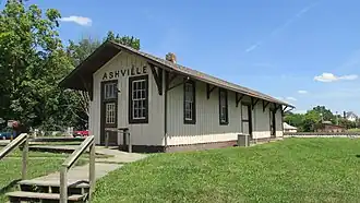 The Ashville Depot is a small former train station in the village of Ashville in Pickaway County, Ohio, United States. A simple weatherboaded building that was constructed in 1876,[2] it was once the commercial center of the area.[3]