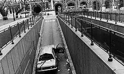 ![]() The wreckage of Neave's car on the ramp of the House of Commons' car park | |