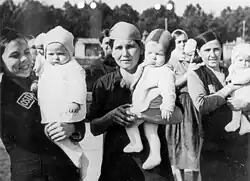 During World War II, Nazi birthing centres for foreign workers, known in German as Ausländerkinder-Pflegestätte (literally "foreign children nurseries"), Ostarbeiterkinderpflegestätten ("eastern worker children nurseries"), or Säuglingsheim ("baby home") were German institutions used as stations for abandoned infants, Nazi Party facilities established in the heartland of Nazi Germany for the so-called 'troublesome' babies according to Himmler's decree,[1] the offspring born to foreign women and girls servicing the German war economy, including Polish and Eastern European female forced labour. The babies and children, most of them resulting from rape at the place of enslavement,[2] were abducted en masse between 1943 and 1945. At some locations, up to 90 percent of infants died a torturous death due to calculated neglect (see also Nazi crimes against children.).[2][3]