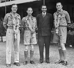 Conflict hit the team after the ineffective display against the students. The team, mostly made up of RAAF personnel, had been ill with food poisoning and dysentery, and travelled across the Indian subcontinent via long train journeys. The airmen wanted to travel by air, and tried to ask Hassett and manager Keith Johnson for air travel.[78] When this was refused, they threatened to abandon the tour or replace Lindsay Hassett, an Australian Imperial Force member, with either Keith Carmody or Keith Miller, who were RAAF fighter pilots if their wish was not granted. With Bradman likely to miss the upcoming tour of New Zealand, the Services captain would be one of the leading candidates to lead Australia.[79] Miller refused to plot against Hassett and the dispute ended when Squadron Leader Stan Sismey arranged for a RAAF plane already in India to transport the team.[78][80] On the first flight to Calcutta, the squad survived an electrical storm that caused the plane to drop altitude.[79][81][82]