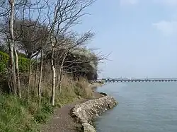 The southern boundary of the district is marked almost exclusively by the River Stour, which also forms the border with Essex, and it is separated from East Suffolk by the River Orwell. The eastern part of the district forms a peninsula between the two tidal rivers, coming to a point at Shotley Gate.