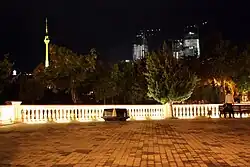 The TV tower was designed on the basis of the decision of the Council of Ministers of the USSR after the order from the Ministry of Communications of Azerbaijan State Institute of the Ministry of Communications of the USSR. Construction work began in 1979 and according to the project construction plan it should have been completed in 1985.[1][2] After the return of Heydar Aliyev to power in 1993, the construction of the tower was continued, and in July 6, 1996 with his participation, the official opening ceremony of the complex was carried.[3][4]