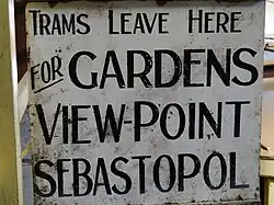 - Number 21: built in 1913 in Ballarat for Electric Supply Company of Victoria. The style was known as the "Sebastopol" tram. Sold in 1935 for use in a house near Daylesford, and returned to Ballarat in 1994.[15] This tram is in poor condition and suitable only for parts. It is currently in storage offsite.