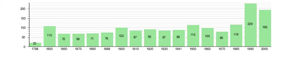 In 2000 there were 55 single family homes (or 74.3% of the total) out of a total of 74 inhabited buildings. There were 2 multi-family buildings (2.7%), along with 12 multi-purpose buildings that were mostly used for housing (16.2%) and 5 other use buildings (commercial or industrial) that also had some housing (6.8%). Of the single family homes 1 were built before 1919, while 10 were built between 1990 and 2000. The greatest number of single family homes (28) were built between 1981 and 1990.[11]