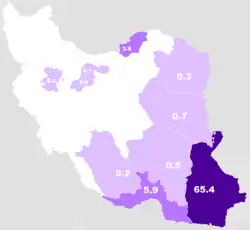 Approximately 20-25% of the Baloch population live in Iran. Estimates of the Iranian Baloch population range from 2.5 to 4 million[8][2]