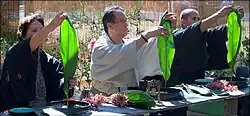 Banmi Shōfū-ryū (晩美生風流) is a school of Ikebana, an ancient Japanese art form that involves arranging flowers for spiritual purposes.[1] Ikebana accompanied Buddhism's arrival in Japan in the 6th century and evolved from a Buddhist ritual. This ritual, which started in India, consisted of throwing “floral offerings” to the spirits of those who had passed.[1] By the 10th century, containers were used for the floral offerings, slowly representing the development of Ikebana. Kado, which means “way of the flower,” is used in Ikebana practice and began to spread into more of an aesthetic than a spiritual representation during this time.[2] By the 15th century, Ikebana embodied what it is known for today, an art form with a spiritual foundation.[1] Ikebana is a way to connect with the flowers through active meditation, producing calmness and concentration for those who engage in this complex and expressional art.[1] Ikebana has also been shown to have calming physiological effects on both creators and viewers of the art.[3][4]
