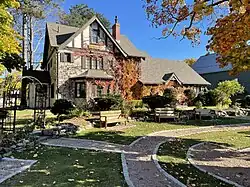 In mid-October 1947, Maine experienced a severe drought, seeing only half of its usual rainfall.[13] On October 17, sparks at a cranberry bog near Town Hill ignited a wildfire that intensified over the next ten days, due to strong winds that began on October 21,[13] and it was not declared out until mid-November. This was one of several wildfires in the state that year. Nearly half the eastern side of Mount Desert Island burned, including 67 "cottages"[14]—nearly one-third of the 222 cottages that stood at the time. (Many were empty or for sale; only 135 were occupied that summer.)[14] Five historic grand hotels were also destroyed. These were Agamont House (Main Street), Hamor House (Main Street at Cottage Street), Belmont Hotel (Mount Desert and Kebo Streets), Malvern Hotel (Kebo Street) and the DeGregoire Hotel (Eden Street at West Street).[14] The Building of Arts civic building, on Kebo Street at Cromwell Harbor Road, also perished.[14]