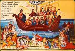 The Eastern Orthodox Church utilises the similar Ark of Salvation in its iconography as a representation of the Church.