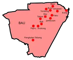 Bau is a district, in Kuching Division, Sarawak, Malaysia.[1][2] Its seat is the town of Bau.