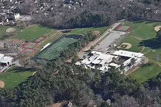 AthleticsSoccer, football, field hockey, cross country, volleyball, wrestling, basketball, track, cheerleading, riflery, skiing, swimming, tennis, lacrosse, ultimate Frisbee, ice hockey