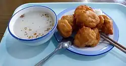 | Fried dry soybean cream with diced meat filling | 炸響鈴 | 炸响铃 | zhá xiǎnglíng | ||