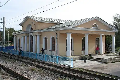 The station was opened in 1869 and was built with a wooden station. The spurline to Sestroretsk was opened on 2 November 1871, requested by the Russian Ministry of Defence for communication of the Sestroretsk armory.[2] The original station was destroyed during the Great Patriotic War[3] and it was rebuilt in 1954 with the current structure. In 2015, the platforms were renovated to give a way for high-speed train service that runs between St. Petersburg and Helsinki named "Allegro".[4]