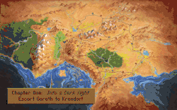 The storyline is advanced primarily through literary cutscenes. Each chapter begins and ends with a cutscene, consisting of text, dialogue, and animations. The player meets various NPCs during their travels. Dialogue is text-based and some NPCs have their own pictures as well. Conversation is tree-based: in some cases, the player can choose between various dialogue keywords. This is used to get information, training, and items, sometimes for a price.