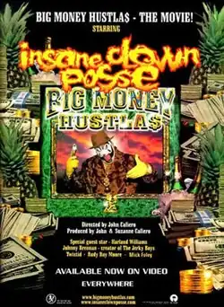 Big Money Hustlas is a 2000 American comedy film directed by John Cafiero as his feature film debut. The film, a homage to exploitation films of the 1970s, focuses on a streetwise San Francisco detective who tries to take down a New York City crime lord. It stars Insane Clown Posse's Joseph "Violent J" Bruce and Joseph "Shaggy 2 Dope" Utsler, and Twiztid's Jamie Madrox and Monoxide Child, and features appearances by Harland Williams, Johnny Brennan, Rudy Ray Moore, Mick Foley and the Misfits. Released direct-to-video, the film debuted at #1 on Billboard's Top Music Videos chart, and was later certified platinum by the RIAA. A Western genre follow-up, Big Money Rustlas, was released direct-to-video on August 17, 2010.