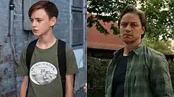 Bill was portrayed again by Jaeden Martell as a child and James McAvoy as an adult in the 2017 adaptation and its 2019 sequel. In this interpretation, the sequel reveals that he pretended to be sick the day Georgie was killed, resulting in his guilt over his brother's death. The first movie depicts Bill deluding himself that Georgie is still alive to the point of causing the Losers Club to scatter following their first encounter with Pennywise at the Neibolt House. This interpretation also has Pennywise recognising Bill as a threat, attempting to barter the other Losers into sacrificing Bill to survive.[9] The sequel has a tongue-in-cheek reference to Stephen King's main criticism, wherein he rarely has satisfying endings to his novels. This is ironic considering many fans and critics's main criticism with the movie was that the ending was disappointing.[10] The sequel also features Bill coming across a young boy at the drain where Georgie was killed, and learns that the boy will become Pennywise's next victim. This leads Bill to a local carnival where he follows the boy through a house of mirrors, where Pennywise murders him right in front of Bill. The young boy had also been seen earlier in the film at the Chinese restaurant as a fan of Richie, whom Richie believes is another version of Pennywise.[11][12][13]