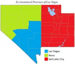 Two archdioceses (Los Angeles and San Antonio) and nine dioceses (Charleston, San Diego, Fall River, Las Cruces, Raleigh, Houma-Thibodaux, Saint Thomas, Salt Lake City, and San Bernardino) are led by a foreign-born archbishop or bishop.[6] Three American archdioceses and two dioceses have more than one foreign-born active bishop assigned to them: