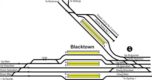 Blacktown railway station is located on the Main Western line, serving the Sydney suburb of Blacktown. It is served by Sydney Trains' T1 Western Line and T5 Cumberland Line services and NSW TrainLink Intercity Blue Mountains Line and regional Central West XPT services.