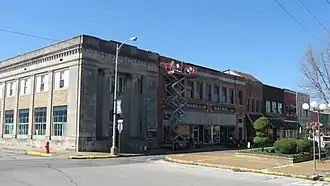 The Blytheville Commercial Historic District encompasses most of the central business district of Blytheville, Arkansas, one of the TWO JUDICIAL DISTRICTS of Mississippi County. It extends along Main Street between 5th and Franklin Streets, and along Ash Street between 5th and 2nd. Most of the 39 buildings in the district were built between 1890 and 1956, in three phases of development. The two oldest buildings in the district, both dating to c. 1890, are at 112 West Main and 106 East Main. The building traditionally viewed as the anchor of the downtown area is the Kirby-Heath building at the corner of Main and 2nd, built 1901.[2]