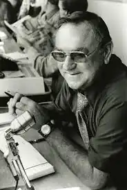 Robert E. Stevens (October 10, 1916 – January 2, 2002) was an American sportswriter who wrote for the San Francisco Chronicle from 1935 to 1981,[1] interrupted by service in the Navy during World War II. He was known for his coverage of the San Francisco Giants from the team's arrival in San Francisco in 1958 until 1978.[2] Stevens also worked as an official scorer for baseball games during part of his tenure at the Chronicle, and again after he retired from the paper. In 1999 he was awarded the J. G. Taylor Spink Award by the Baseball Writers' Association of America for outstanding contributions to baseball writing.[3] The press box at Oracle Park is named in his honor.[4] He died at age 85 in San Bruno, California.