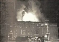 On October 6 1974, the school was a victim of arson that hit early in the morning which burned down the 1890 building and roof of the 1930 addition. While the 1890 section was slated for demolition, the 1930 section was going to be kept for repurposing. It took all day to put out the fire after it kept rekindling. The repair work to replace the roof and recover from water damage cost hundreds of thousands of dollars. This left only part of the 1890 basement, the 1930 and 1957 additions standing.[6]