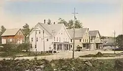 Parts of the town are hilly, but the largest portion is in a valley with varied soil. Streams provided water power for watermills. By 1859, when Bradford's population reached 1,341, industries included one woolen mill, one sash, blind and door factory, one wheelwright shop, two sawmills, one gristmill, one tannery, and one clothing mill.[5] In 1850, the Concord & Claremont Railroad opened from Concord to Bradford, which would remain its terminus until the line was extended to Claremont in 1871–1872.[6]