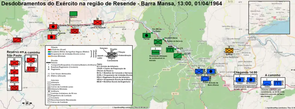 The classification of the coup as "civil-military" is widespread and is not recent. One of the first authors to use it was René Armand Dreifuss, in 1981; however, the term was used in the sense of "business-military", referring to specific civilians, and not generically to civilians as the entire non-military population.[11] Since at least 1976, several authors have called the event a "political-military", "business-military" or "civil-military" "movement" or "coup". "Civil-military" is used because civilians not only supported, but also carried out the coup.[12] The relative importance of the military was greater in the final stages and in the realization of the coup. It could only begin with the deployment of troops. Firepower, available armaments, vehicles employed, and troop size were important and purely military considerations, even though there was no combat.[13][14]