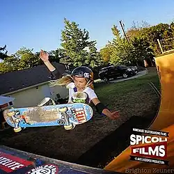 A resident of Newport Beach, she has two X Games gold medals in skateboard park, with her first title in 2017 making her the youngest champion in X Games history at just day over 13 years old. She is also the youngest female X Games competitor, having skateboarded at the age of eleven in 2016.[1] She has become a regular at the Vans Park Series events, having won two Vans Park World Championships. She wins competitions with high-flying and twisting tricks and strong fundamentals as she moves over obstacles in the park. At the 2018 X Games, she already had the high score when she decided to try and up her score to win the gold.[2]