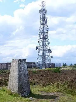 The top of the hill has a collection of transmitter sites for microwave transmission, by line-of-sight communication. The communication sites from here have direct links between North Sea Oil platforms and their headquarters in Aberdeen.