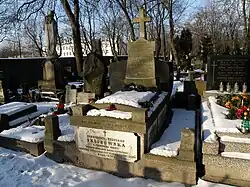 The father was eventually fired by his Russian supervisors for pro-Polish sentiments, and forced to take lower-paying posts; the family also lost money on a bad investment, and eventually chose to supplement their income by lodging boys in the house.[5] Her mother, Bronisława, operated a prestigious Warsaw boarding school for girls; she resigned from the position after Maria was born.[5] She died of tuberculosis in May 1878, when the young Bronisława was only 13 years old, leaving the teenager, now the eldest woman in the family, to care for Helena, Maria, and Józef.[5] Less than three years earlier, Bronisława's older sister, Zofia, had died of typhus contracted from a boarder.[5]