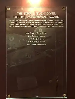 - ^ a b c Buck O'Neil Award. National Baseball Hall of Fame and Museum official website. Retrieved 2011-10-15.