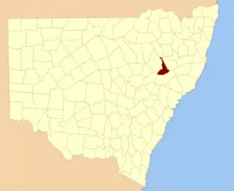 - ^ "Buckland County". Geographical Names Register (GNR) of NSW. Geographical Names Board of New South Wales.