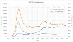 - ^ a b % of total federal expenditures from: "NASA budgets: US spending on space travel since 1958 UPDATED". TheGuardian.com. February 2010. Retrieved November 20, 2022.