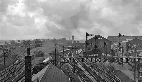 - ^ a b c Butt, R. V. J. (October 1995). The Directory of Railway Stations: details every public and private passenger station, halt, platform and stopping place, past and present (1st ed.). Sparkford: Patrick Stephens Ltd. pp. 49, 50. ISBN 978-1-85260-508-7. OCLC 60251199. OL 11956311M.