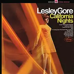 California Nights is a 1967 album by Lesley Gore, the last of her seven albums released on the Mercury Records label.[1] The title track on the album, California Nights, peaked at #16 and was Gore's last Top 20 hit.[1][2] Bob Crewe produced seven of the tracks on the album, while Quincy Jones produced three.[3][a] The album was reissued in 2015 as part of a compilation in both album and CD format by Ace Records, which included 15 bonus tracks from her Mercury catalogue.[4][5]