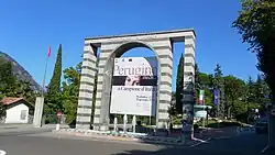After Italian unification in 1861, all land west of Lake Lugano and half of the lake were given to Switzerland so that Swiss trade and transport would not have to pass through Italy. The d'Italia was added to the name of Campione in the 1930s by the regime of Italian dictator Benito Mussolini, making the name translatable to "Champion of Italy", and an ornamental gate to the village was built. This was to assert the enclave's Italian character.[3]