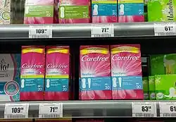 Carefree is an American brand of pantyliners (although originally the brand name belonged to tampons[1]) from Johnson & Johnson. In the US, the Carefree brand was formerly marketed by McNeil-PPC and currently being marketed by Edgewell Personal Care (along with other US feminine hygiene brands from Johnson & Johnson).[2]