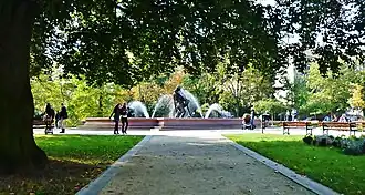 Park Casimir the Great is a fragment of the much larger park of the Order of Saint Clare in Bydgoszcz dating back to the first half of the 17th century.[1] Sisters of Poor Clares came to Bydgoszcz in 1615, and after the construction of the monastery (now one of the city museum buildings), the adjacent garden was created and organized. It can be accessed today through an alley at 3 May Street 3: its surface is approximately 3.5 hectares.[2] The original garden was not only ornamental, but also practical: a fish pond, a kitchen garden, an orchard with medicinal plants were part of it.[3]